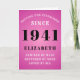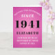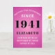 80th birthday born in 1941 pink greeting card. Easily customize the text to the front and the interior of this birthday card using the template provided. Part of the setting standards range of greeting cards.