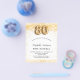 For an elegant 80th birthday party. A chic white background. Decorated with faux gold glitter, sparkles. Personalize and add a name, age and party details. The name is written with a hand lettered style script. Number 80 with balloon style font.