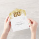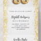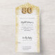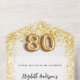 A white background, decorated with faux gold confetti on the inside. Personalize and add a name, party details, RSVP date, return address and name. Number 80 is written with a balloon style number.