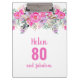80th birthday white pink floral clipboard