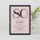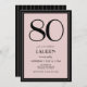 80th Birthday Women's Modern Minimal Black Pink Invitation