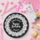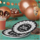 This is a black and white random number pattern with fancy scallops and custom text. The black milestone number 80 is scattered over a white background. The design is a very cool fun way to celebrate the past 80 years at your over-the-hill, 80th birthday party.