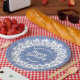 This is a blue and white random number pattern with fancy scallops and custom text. The blue milestone number 80 is scattered over a white background. The design is a very cool fun way to celebrate the past 80 years at your over-the-hill, 80th birthday party.