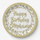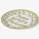 80th Party Random Number Pattern Gold/White Paper Plate