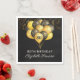 Black and gold balloons And confetti 80th birthday party napkins. Bold black and gold style design with modern script typeface. Customize for any age. 40, 50, 60, 70, 80, 90 and over.