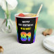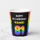 This joyful and fun birthday paper cup design features the number “81“ with a vibrant rainbow spectrum inspired gradient pattern, along with the message “HAPPY 81st BIRTHDAY,”, and a customizable recipient name. Birthday themed paper cups like this might be fun to use at a party being held for somebody who is celebrating their 81st birthday. [~Z0000639]