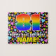 This fun and exciting birthday-themed jigsaw puzzle design features a large number “81” having a multicolored rainbow spectrum inspired gradient pattern. It also features the message “HAPPY 81st BIRTHDAY,”, and a personalized recipient name. The background features a joyful pattern of loving heart shapes having various sizes and colours. An eye-catching, editable birthday puzzle like this might be given to celebrate somebody’s eighty-first birthday. [~Z0000611]