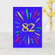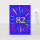 Une carte explosive de 82ème anniversaire ! Quelle merveilleuse façon d'envoyer des salutations d'anniversaire. Le chiffre 82 en jaune vif avec une explosion de couleurs vives et d'étoiles.