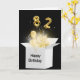 Gold balloons and sparkling light beams glow in a white box on black background for 82nd birthday
