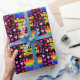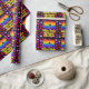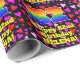 This cheerful and joyful birthday wrapping paper design features a large number “82” with a rainbow spectrum gradient inspired pattern, along with the message “Happy 82nd Birthday,”, and a customizable name. The background features a pattern of purple, red, and pink heart shapes. Birthday themed wrapping paper like this might be a fun way to wrap a gift or present being given to celebrate somebody’s eighty second birthday. [~Z0000549]