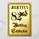 The front of this elaborate eighty-second birthday party foil announcement card design features the message “82nd Birthday Celebration” in ornate script-style text. It also has a customizable name. The back features personalized details about the event, such as the date, time, location/venue, and any other relevant information. Opulent, fancy, personalized invitations like these might be used to invite guests to a birthday party/celebration being held to celebrate somebody’s eighty-second birthday. [~Z0000596]