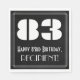 This vintage style 1920s/1930s style inspired birthday themed paper napkin design features a large art deco look inspired number "83", the message "Happy 83rd Birthday,", a custom name, and a border pattern consisting of thin lines. Fun, editable paper napkins like this might be used at a birthday party being held to celebrate somebody’s eighty third birthday. [~Z0000494]