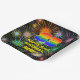 This cheerful and eye-catching birthday themed paper plate design features a large number “83” having a colourful rainbow spectrum inspired gradient pattern. It also features the message “HAPPY 83rd BIRTHDAY,”, and a personalized name. The background of the front features an exciting, colourful pattern inspired by bursting celebratory fireworks. Vibrant paper plates like this might be used when hosting a party for somebody in celebration of their eighty third birthday. [~Z0000604]