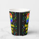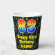 This cheerful and exciting music themed birthday paper cup design features a large number “83” with a rainbow spectrum gradient inspired pattern, along with the message “Happy 83rd Birthday,”, and an editable name. The background features a vibrant and colourful pattern of various music notes and symbols having a variety of sizes and colours. Vibrant, colourful paper cups like this might be fun to use at a birthday celebration being held to celebrate somebody’s eighty-third birthday. [~Z0000541]