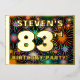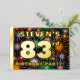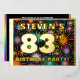 The front of this joyful eighty-third birthday party/celebration foil invitation card design features a customizable name, a large number “83rd”, the message “BIRTHDAY PARTY!”, and a border. The background of the front has an exciting, multicolored pattern inspired by bursting celebratory fireworks. The back features personalized details about the event, such as the date, time, venue/location, and any other important information. Customized invitations like these might be a fun way to invite attendees/guests to a birthday gathering/party being held to honour somebody’s 83rd birthday. [~Z0000602]