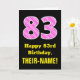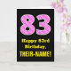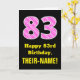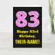 83rd Birthday: Pink Stripes and Hearts "83" + Name Card