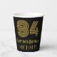 This Roaring Twenties inspired and vintage style birthday paper cup design features a large art deco inspired look number “84”, plus the birthday greeting message “Happy 84th Birthday,” and a custom name. It also has a black-coloured background. Birthday themed paper cups like this might be used at a party celebrating somebody’s eighty fourth birthday. [~Z0000546]