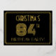 The front of this 1920s-1930s style inspired and vintage-style eighty-fourth birthday celebration/party foil invitation features a customizable name, a large art deco look inspired number “84TH”, the message “BIRTHDAY PARTY!”, and a border pattern consisting of lines. The front also features a black-coloured background by default, but it can be customized to a different colour if desired. The back features personalized details about the event, such as the date, time, location, and any other information that may be relevant. Elegant, luxurious, personalized invitations like these might be used to invite guests to a birthday party/celebration being held to celebrate somebody’s 84th birthday. [~Z0000590]