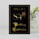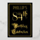 The front of this ornate, luxurious, foil eighty-fourth birthday celebration invitation design features the message “84th Birthday Celebration” in elegant script-style text. It also has a personalized name. The background of the front is coloured black by default (although it can be customized to a different colour). The back features personalized details about the event, such as the date, time, location, and any other information that may be relevant. Fancy, opulent, editable invitations like these might be used to invite guests to a birthday party/celebration being held to celebrate somebody’s 84th birthday. [~Z0000589]