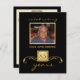 Invitations formelles personnalisées à la fête d'anniversaire — Invitations élégantes mais masculines de photos en noir et or avec accents dorés et monogramme joliment détaillés sur parchament simulé. Ajoutez votre propre photo et customisez le nom, la date et les détails de l'occasion heureuse. Parfait pour les photos contemporaines ou vintages. Des enveloppes de correspondance, des cartes postales et des cartes de remerciements sont disponibles.**IMPORTANT : Taille pour les petites cartes d'invitation 4,25 x 5,5. Autres tailles et styles disponibles dans la galerie.