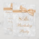 Women's elegant 85th Birthday Party invitations. Woman's eighty fifth / eighty five years old birthday party invites. Beautiful white damask pattern background with a pretty, stylish peach/coral bow and ribbon image. These glamourous, chic, classy invites are beautifully sophisticated and are decorated / printed on both sides. PLEASE NOTE: All products on Zazzle have flat printed images. Bow and ribbon images purchased from digital-designs-by-elena. Damask pattern by Delightful Doodles. If you need any assistance customizing your invitation please contact me through my store and I will be happy to help.