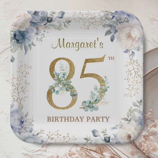 Celebrate 85 yearsmilestone in style with our elegant "85th Birthday Party Elegant Dusty Blue Floral Invitation!" Perfect for an elegant and memorable 80th birthday party. Order your today and make your celebration truly special! Please note: Gold glitter effects are only simulated; no real gold will be used in the printing process