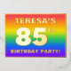 The front of this joyful eighty-fifth birthday celebration/party foil invitation card design features a customizable name, a large number “85th”, the message “BIRTHDAY PARTY!”, and a border. The background of the front features an eye-catching, colourful, rainbow spectrum inspired gradient pattern. The back features personalized details about the event, such as the date, time, location/venue, and any other important information. Customized invitations like these might be a fun way to invite guests/attendees to a birthday gathering/party being held to celebrate somebody’s 85th birthday. [~Z0000599]