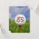 Close up of a white golf ball on red tee in grass for 85th birthday party invitation.
