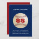 A baseball on a dark blue background decorates this unique and fun 85th Birthday Celebration Invitation. The reverse has white lettering on a red background. You can easily change the text for name, age, event, date, etc. Sports fans will love it! All Rights Reserved © 2014 Alan & Marcia Socolik.
