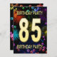 Add a name to customize this unique party invitation. 85th birthday party invitation with fireworks and bubbles. Add your details inside to create a perfect fun invite. Light up the sky with these glorious fireworks. An invitation to a birthday party that has style and loads of fun.
