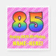 This happy and upbeat 85th birthday themed paper napkin design features a large number "85" having a colourful pattern inspired by the look of a rainbow spectrum. It also features the message "Happy 85th Birthday,", and a customizable name. The background features a pattern of light pink and dark pink stripes containing loving pink heart shapes. Fun, customizable paper napkins like this might be used at a birthday celebration being held in honour of somebody’s eighty fifth birthday. [~Z0000417]