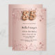 A modern, stylish and glamourous invitation for a 85th birthday party. A rose gold background with stars.The name is written with a hand lettered style script. Personalize and add your party details. Number 85 is written with a balloon style font, script.
