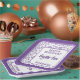 This unique numeric design features a purple and white random number pattern with the milestone number 85 displayed in various sizes and angles. A white rounded square serves as the centre for your text, surrounded by a purple and white frame.