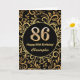 86th Birthday Black and Gold Floral Pattern Card