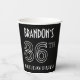 This elegant Roaring Twenties era inspired art deco style birthday themed paper cup design features a personalized name, along with the message “86TH BIRTHDAY PARTY!”. The number “86TH” has a fancy geometric lined styling. Stylish paper cups like these might be used when hosting a birthday party for somebody in celebration of their eighty-sixth birthday, or some other 86th event. [~Z0000658]