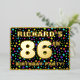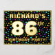 The front of this upbeat and eye-catching eighty-sixth birthday party foil invitation card design features an editable name, a large number “86th”, the message “BIRTHDAY PARTY!”, and a border. The background of the front features an exciting, multicolored pattern of star shapes. The back features personalized details about the event, such as the date, time, venue/location, and any other information that may be important. Editable invitations like these might be a fun way to invite guests/attendees to a birthday gathering being held to honour somebody’s 86th birthday. [~Z0000600]