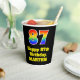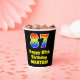 This colourful and fun birthday themed paper cup design features a large number “87” having a rainbow spectrum gradient inspired pattern. It also features the message “Happy 87th Birthday,”, and a personalized name. The background is coloured black. Colourful, vibrant paper cups like this might be fun to have at a birthday party/celebration being held to celebrate somebody’s eighty seventh birthday. [~Z0000537]
