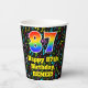 This colourful and cheerful music-themed birthday paper cup design features a large number “87” having a rainbow spectrum gradient inspired pattern. It also features the message “Happy 87th Birthday,”, and a customizable name. The background features a vibrant and colourful music notes and symbols pattern. Vibrant, colourful paper cups like this might be fun to have at a birthday celebration/party being held to celebrate somebody’s eighty seventh birthday. [~Z0000541]