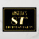 The front of this 1920s/1930s style inspired and vintage-appearance eighty-seventh birthday celebration/party foil invitation features an editable name, a large art deco style inspired number “87th”, the message “BIRTHDAY PARTY”, and a border pattern consisting of lines. There is a black-coloured background on the front by default, but it can be customized to a different colour if desired. The back features personalized details about the event, such as the date, time, venue, and any other important information. Elegant, luxurious, customized invitations like these might be used to invite guests to a birthday party being held to celebrate somebody’s 87th birthday. [~Z0000591]