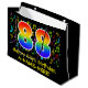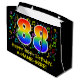 This fun, vibrant, and colourful birthday gift bag design features a large number "88" with a rainbow spectrum gradient inspired pattern, along with the message "Happy 88th Birthday,", and a customizable name. Part of the background has a pattern of various music notes and symbols having a variety of colours and sizes. A gift bag like this might be used when giving a gift or present in honour of somebody’s 88th birthday. [~Z0000425]
