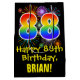 This fun, exciting, and colourful birthday themed giftbag design features a large number "88" with a rainbow spectrum gradient inspired pattern, along with the message "Happy 88th Birthday,", and a personalized recipient name. It also features a colourful background pattern inspired by the appearance of bursting celebratory fireworks. A birthday themed gift bag like this might be a fun way to wrap a gift or present being given to somebody who is celebrating their 88th birthday. [~Z0000509]