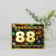 The front of this bold eighty-eighth birthday party foil invitation postcard design features an editable name, a large number “88th”, the message “BIRTHDAY PARTY!”, and a border. The background of the front features an upbeat, multicolored pattern inspired by bursting celebratory fireworks. The back features personalized details about the event, such as the date, time, venue/location, and any other information that may be relevant. Editable invitations like these might be a fun way to invite guests to a birthday party being held to celebrate somebody’s 88th birthday. [~Z0000609]