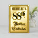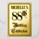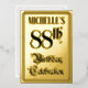 The front of this elaborate and luxurious eighty-eighth birthday celebration foil announcement card design features the message “88th Birthday Celebration” in opulent script-style text. It also features a personalized name. The back features personalized details about the event, such as the date, time, place/venue, and any other important information. Ornate, elegant, editable invitations like these might be used to invite guests to a birthday party being held in celebration of somebody’s 88th birthday. [~Z0000596]