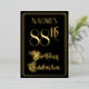 The front of this opulent and fancy foil eighty-eighth birthday party/celebration invitation design features the message “88th Birthday Celebration” in ornate script-style text. It also has an editable name. The background of the front is coloured black by default (although it can be customized to a different colour). The back features personalized details about the event, such as the date, time, location, and any other relevant information. Ornate, luxurious, personalized invitations like these might be used to invite guests to a birthday party/celebration being held in celebration of somebody’s 88th birthday. [~Z0000589]