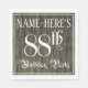 This fancy and luxurious birthday themed paper napkin design features a custom name and the message “88th Birthday Party”. The large number “88th” and the words “Birthday Party” are in ornate script-style text, and the background features an imitation/faux woodgrain-inspired pattern. Elaborate, elegant paper napkins like this might be useful to have at a birthday party being held to celebrate somebody’s 88th birthday. [~Z0000564]
