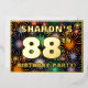 The front of this upbeat and joyful eighty-eighth birthday party/celebration foil invitation card design features a customizable name, a large number “88th”, the message “BIRTHDAY PARTY!”, and a border. The background of the front has an eye-catching, multicolored pattern that resembles bursting celebratory fireworks. The back features personalized details about the event, such as the date, time, place/venue, and any other important information. Customized invitations like these might be a fun way to invite guests/attendees to a birthday gathering being held in celebration of somebody’s 88th birthday. [~Z0000602]