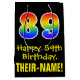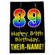 This colourful, exciting, and fun birthday gift bag design features a large number "89" with a rainbow spectrum gradient inspired pattern, along with the message "Happy 89th Birthday,", and a personalized recipient name. It also has a black-coloured background. A gift bag like this might be used when giving a gift or present in honour of somebody’s 89th birthday. [~Z0000512]