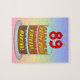 This fun and upbeat birthday jigsaw puzzle design features a cartoon-style depiction of a three-tier birthday cake having number-shaped candles on top showing the age “89“, along with the message “HAPPY 89TH BIRTHDAY,”, and an editable recipient name. The background features a multi-colour pastel rainbow spectrum inspired gradient pattern. A cheerful, editable birthday puzzle like this might be used to acknowledge somebody’s eighty-ninth birthday. [~Z0000621]