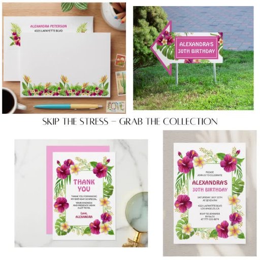 89th birthday invitations Tropical Party Luau Pink hibiscus