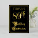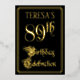 The front of this fancy and opulent foil eighty-ninth birthday celebration/party invitation design features the message “89th Birthday Celebration” in luxurious script-style text. It also has a personalized name. The background of the front is coloured black by default (although it can be customized to a different colour). The back features personalized details about the event, such as the date, time, location, and any other relevant information. Ornate, luxurious, customized invitations like these might be used to invite guests to a birthday celebration/party being held in celebration of somebody’s 89th birthday. [~Z0000589]